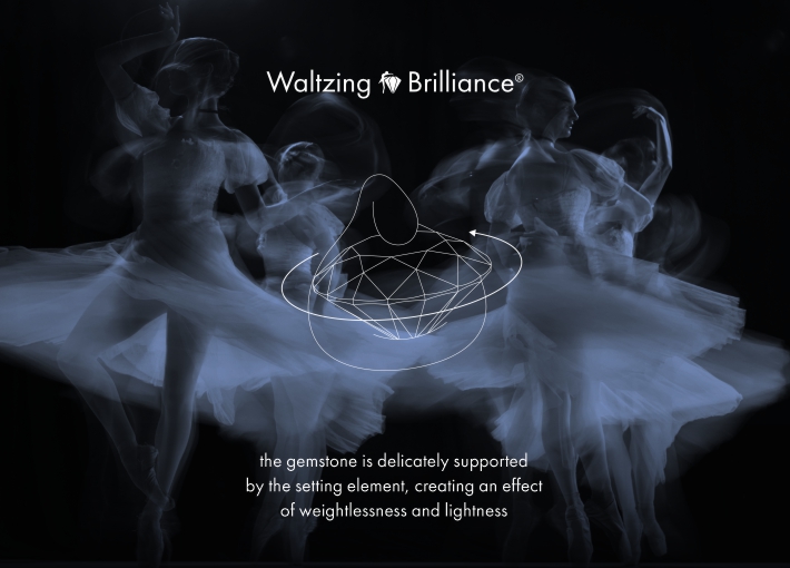 Thanks to the Waltzing Brilliance® technology (also known as the "Russian setting"), diamonds, rubies, sapphires, and emeralds move as if waltzing, refract light, and reveal the full depth of their brilliance. Such an astonishing effect is unattainable with classical setting techniques and makes it possible to create precious works of art of unparalleled beauty.