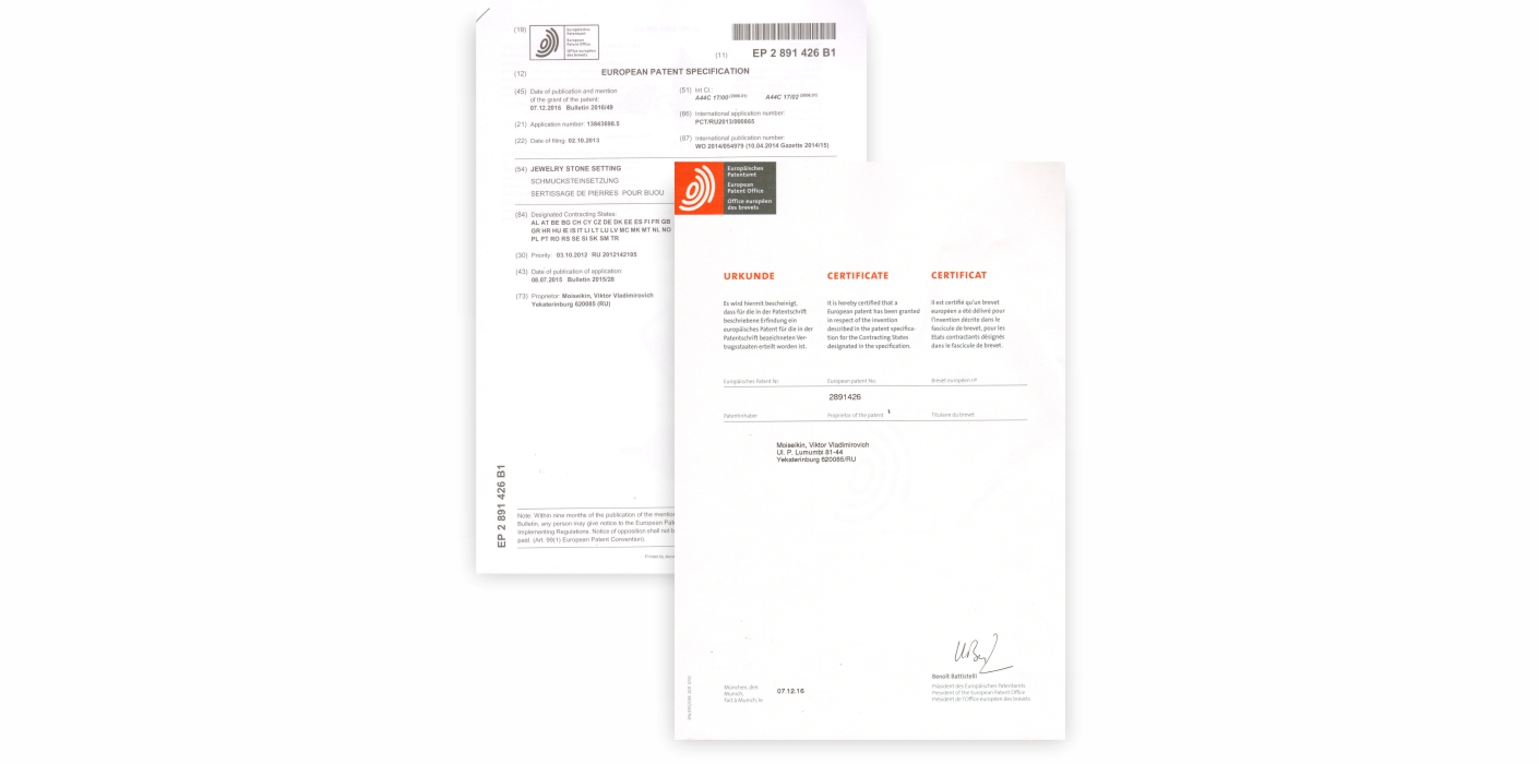 The hallmark of MOISEIKIN is the unique technology of mobile gemstone setting, Waltzing Brilliance®, invented and patented by Viktor Moiseikin in 2013. It marked a breakthrough in the world of jewellery art, as no jeweller in the previous 80 years had succeeded in creating radically new engineering solutions.