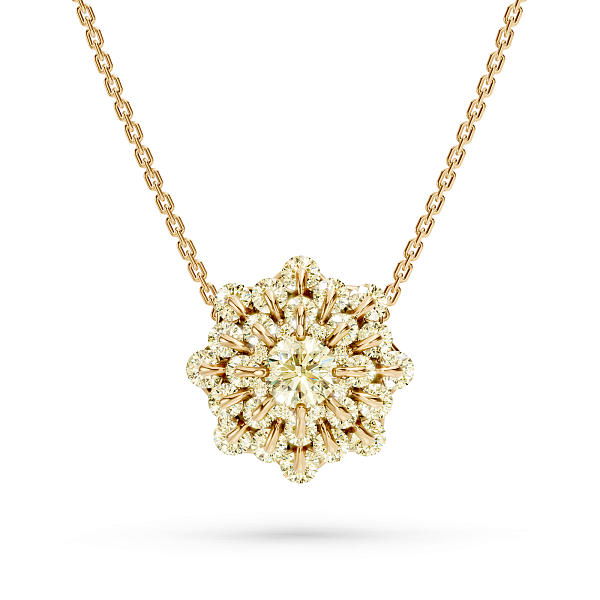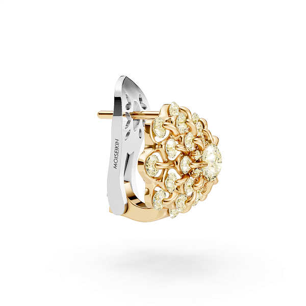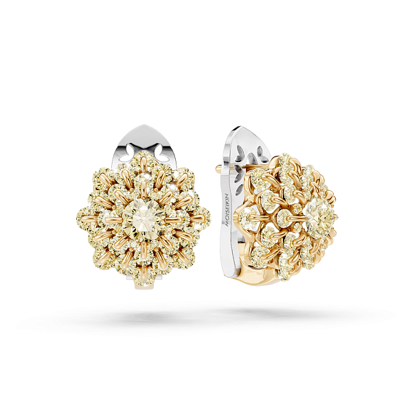 Мастера Ювелирного Дома MOISEIKIN расположили закрепки бриллиантов таким образом, чтобы орнамент изделия напоминал структуру снежинки, уникальную в каждом своем исполнении, но при этом легко узнаваемую всеми. Чтобы добиться вальсирующего эффекта, была использована авторская запатентованная технология закрепки камня с помощью всего одного крапана - «русская закрепка». Благодаря этому, будучи надежно зафиксированным в составе изделия, драгоценный камень остается подвижным и, переливаясь, передает сияние снежинок.