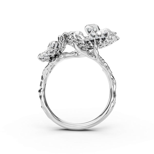 Мастера Ювелирного Дома MOISEIKIN расположили закрепки бриллиантов таким образом, чтобы орнамент изделия напоминал структуру снежинки, уникальную в каждом своем исполнении, но при этом легко узнаваемую всеми. Чтобы добиться вальсирующего эффекта, была использована авторская запатентованная технология закрепки камня с помощью всего одного крапана - «русская закрепка». Благодаря этому, будучи надежно зафиксированным в составе изделия, драгоценный камень остается подвижным и, переливаясь, передает сияние снежинок.